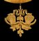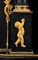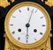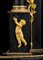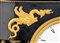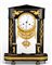 cassa a tempio in marmo nero del Belgio con putti, animali mitologici e decori in bronzo dorato, quadrante circolare in smalto bianco con numeri romani firmato "Robin a Paris"; l'assenza dei numeri Arabi alle ore 3, 6, 9 e 12 evidenzia che l’orologio è stato realizzato dopo il 1814, mentre il tipo di firma è caratteristica dello smaltatore François-Marie Dubuisson molto prolifico dal periodo Luigi XVI fino alla sua morte avvenuta a Belleville vicino a Parigi il 6 aprile 1832. Movimento con sospensione a filo, regolatore a pendolo e suoneria delle ore e delle mezze su campana.