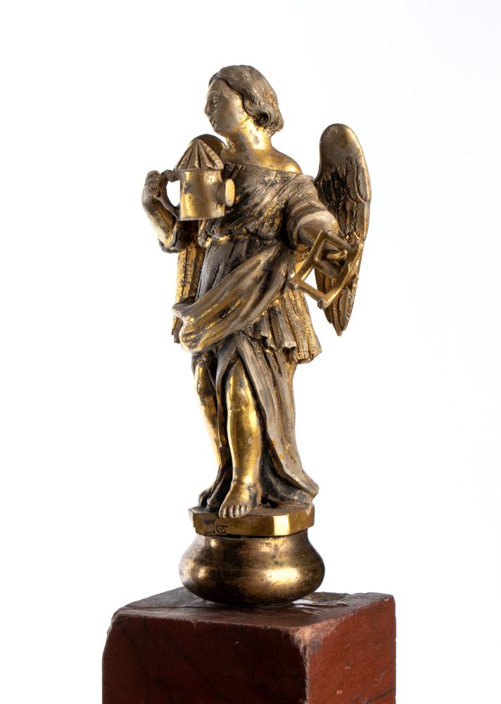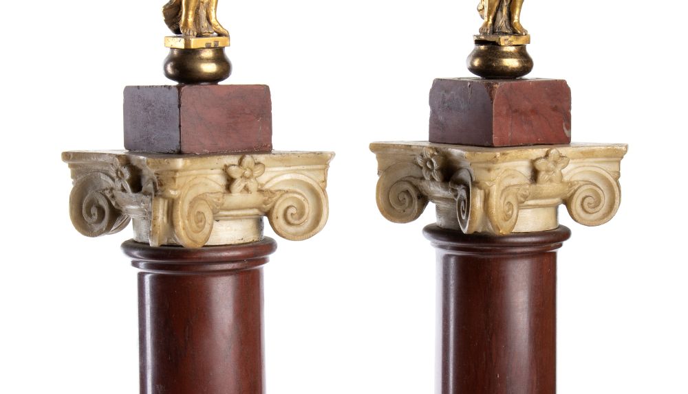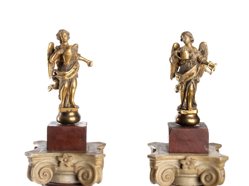 Coppia di colonne in marmo con angeli in bronzo dorato - Italia, XVIII secolo