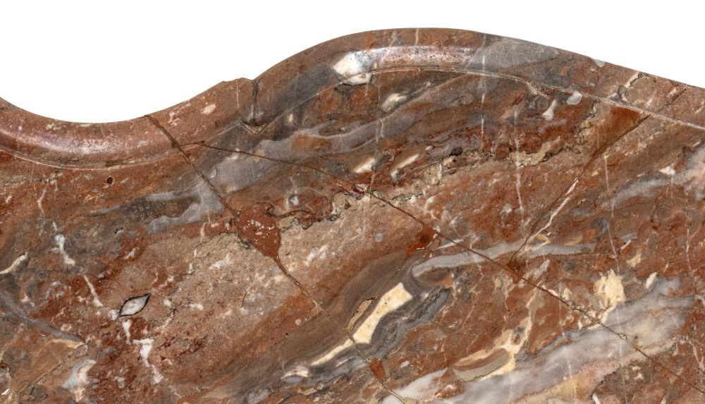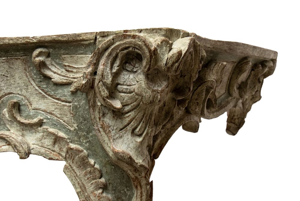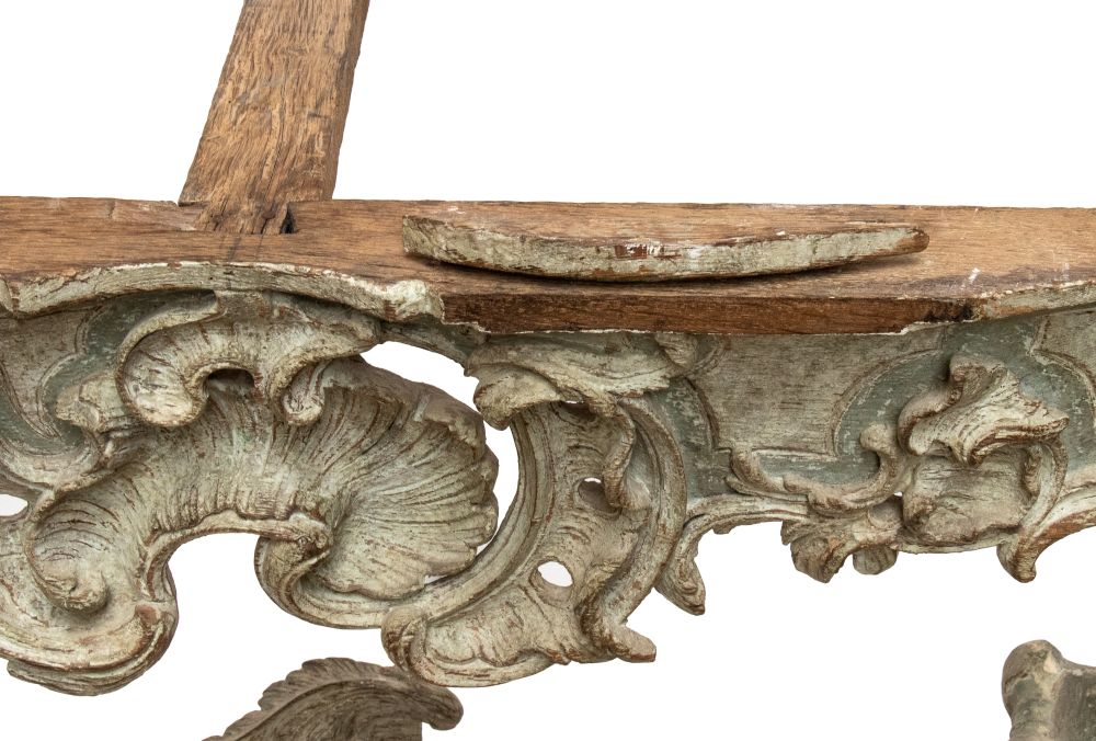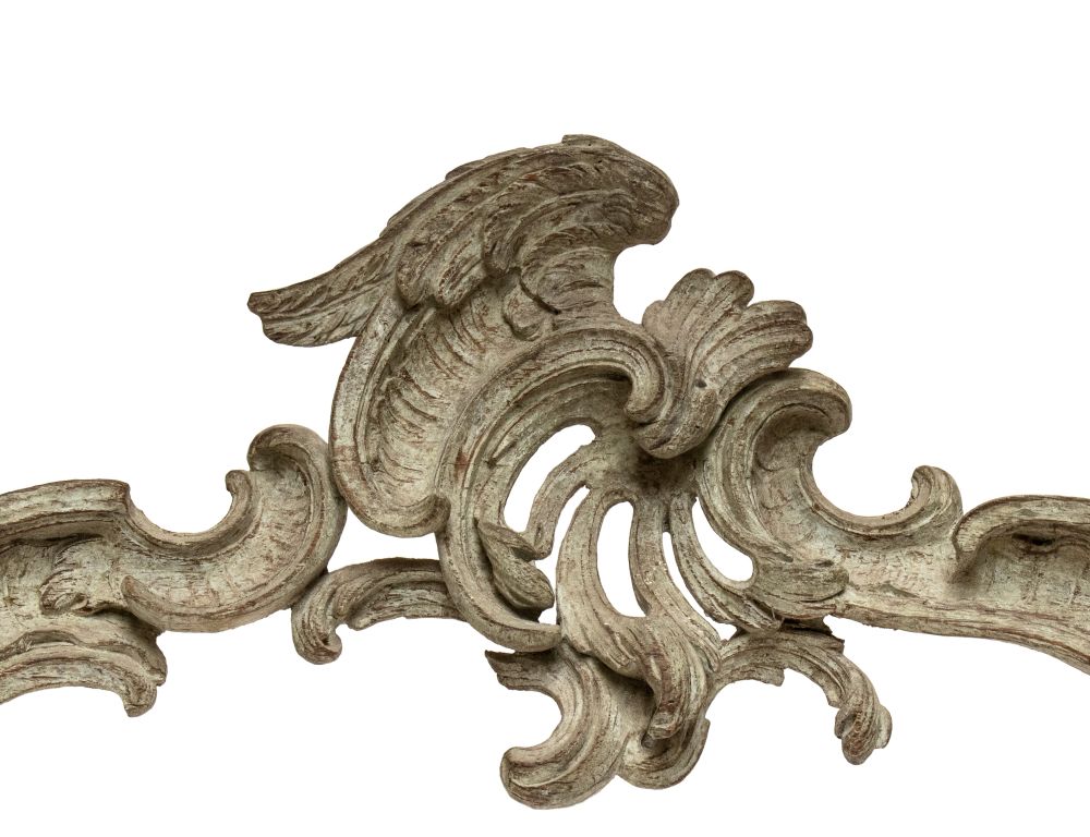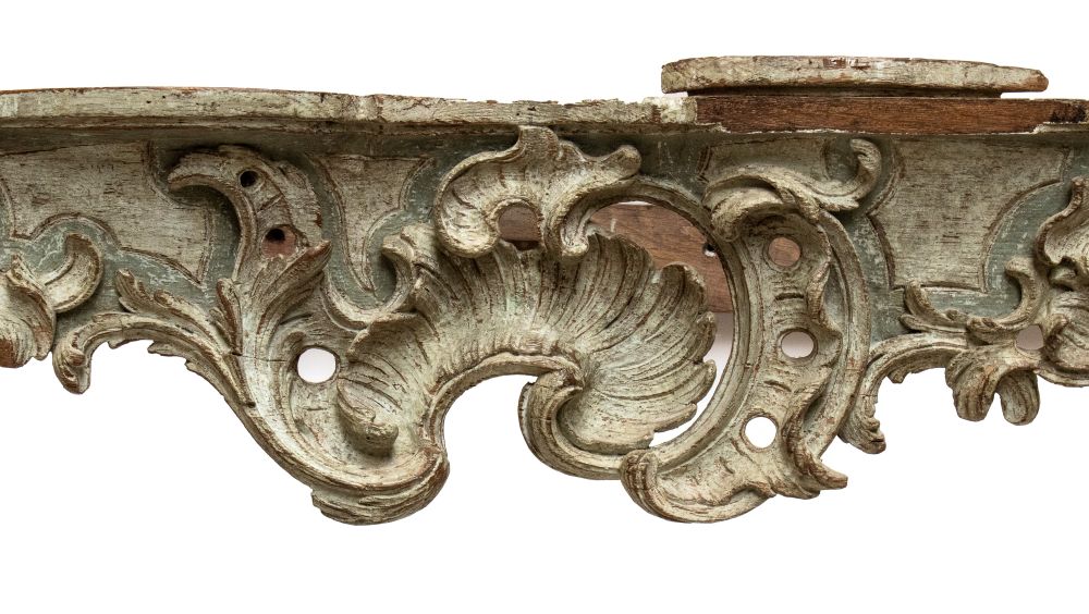 in stile Rococò, finemente scolpita con motivi floreali. Piano in marmo coevo.