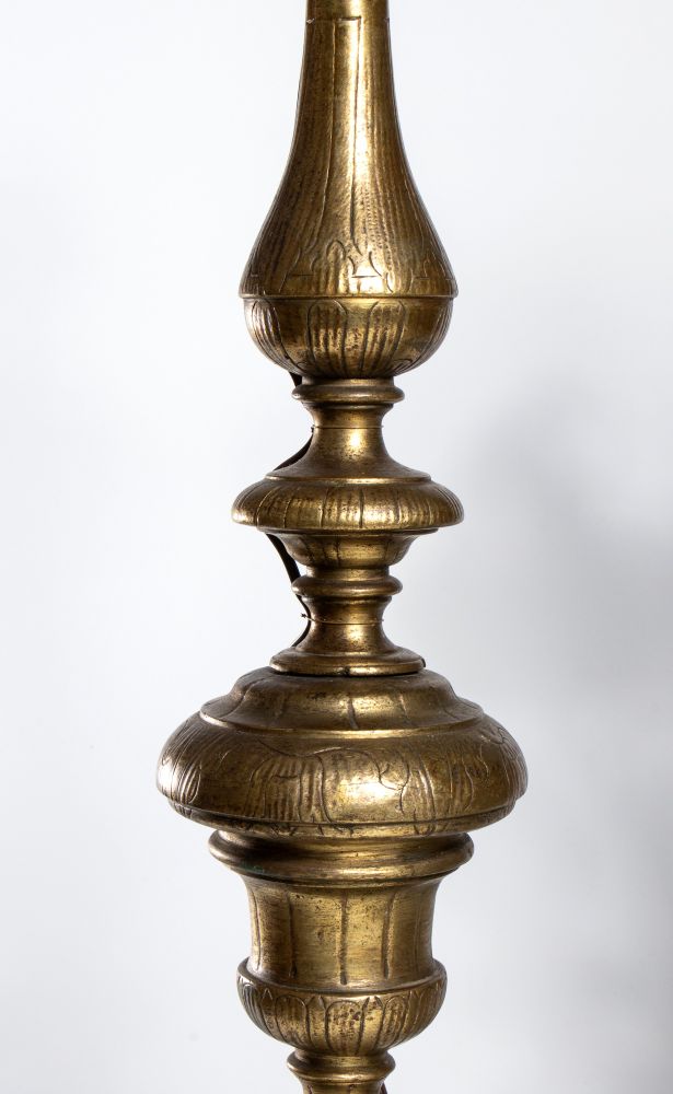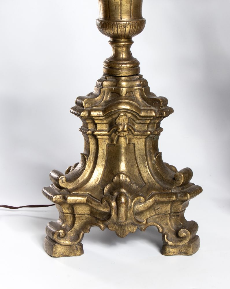 elettrificati e trasformati in lampade, in ottone dorato e con base lavorata.