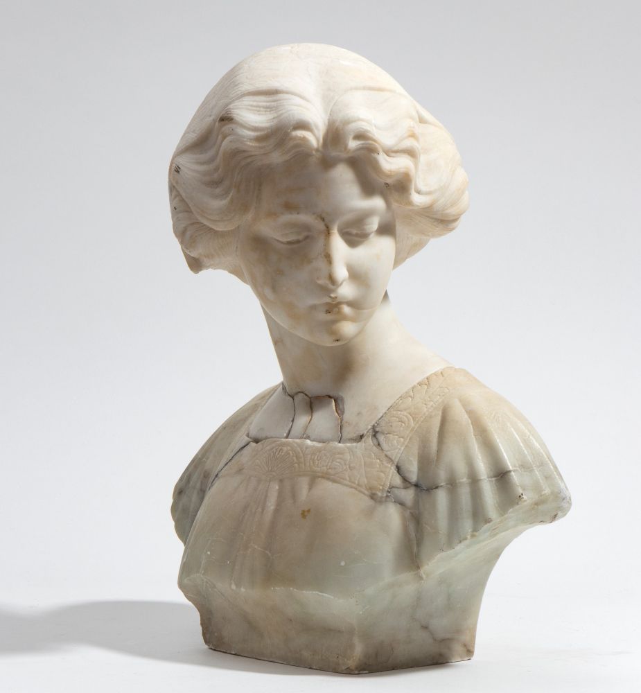 GIUSEPPE BESSI (attribuito a) (Volterra, 1857 - Volterra, 1922) Busto di donna in marmo - Italia, XIX secolo