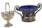 in argento e vetro blu, due anse a volute cm 43x20, alt. cm 22