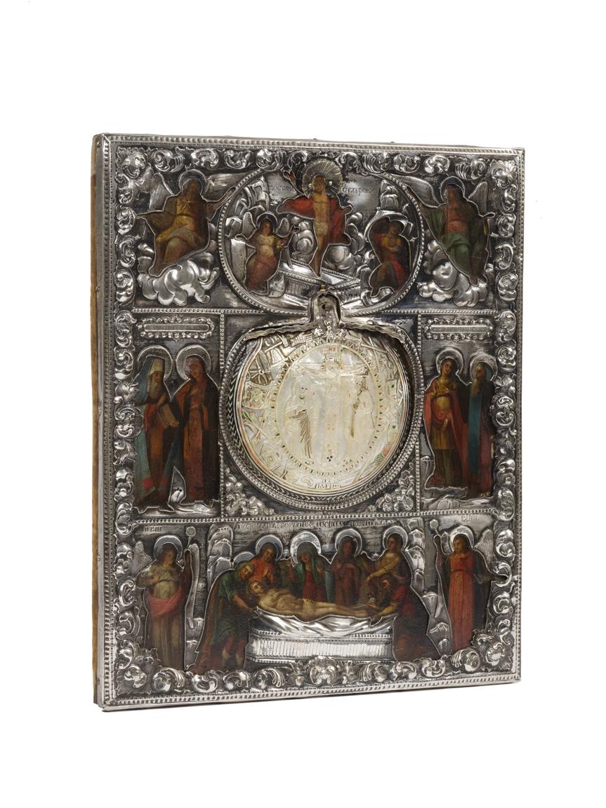 ICONA, RUSSIA, 1848riza in argento con madreperla, cm 38x31