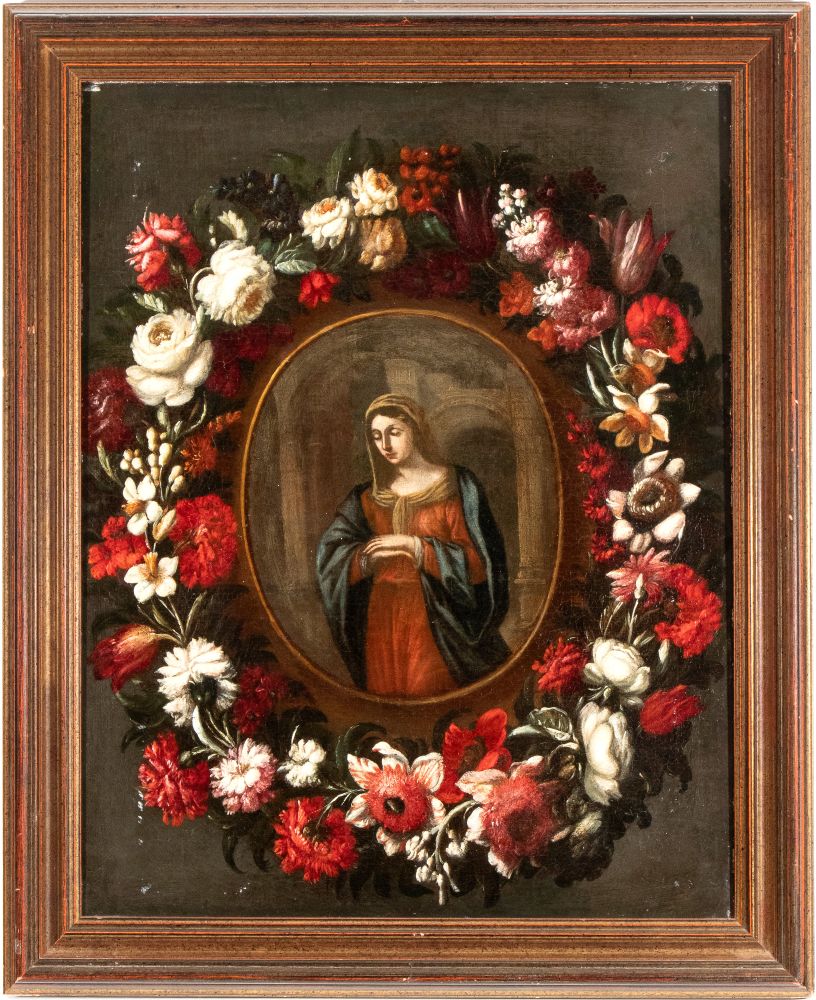 Dipinto Madonna in ghirlanda di fiori Italia, XX secolo