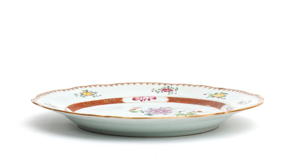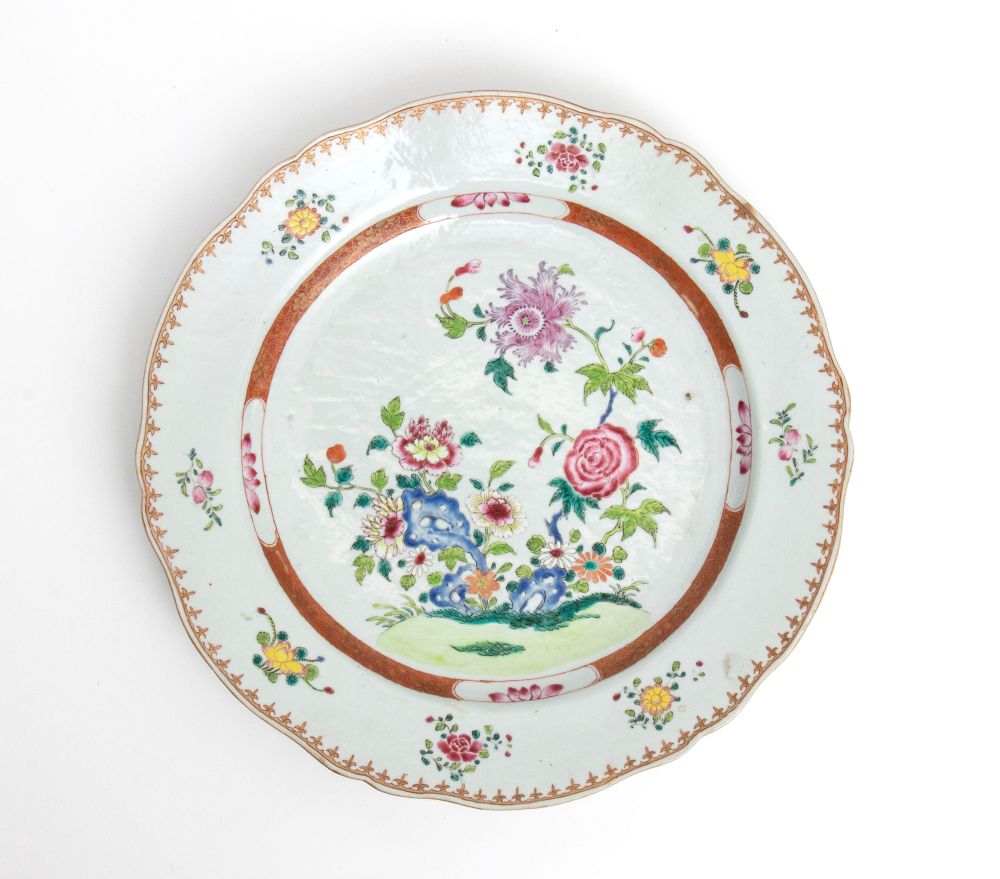 Piatto in porcellana cinese "Famiglia Rosa" Cina, epoca Qing