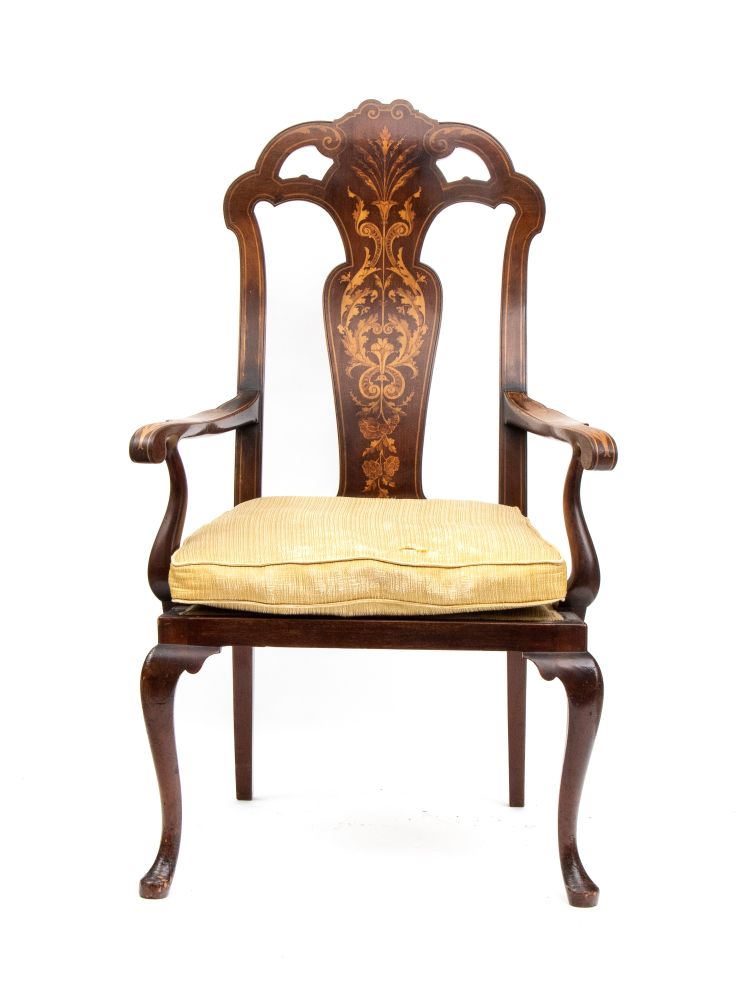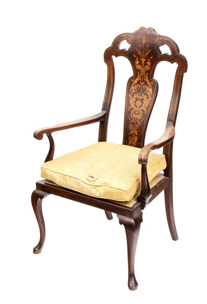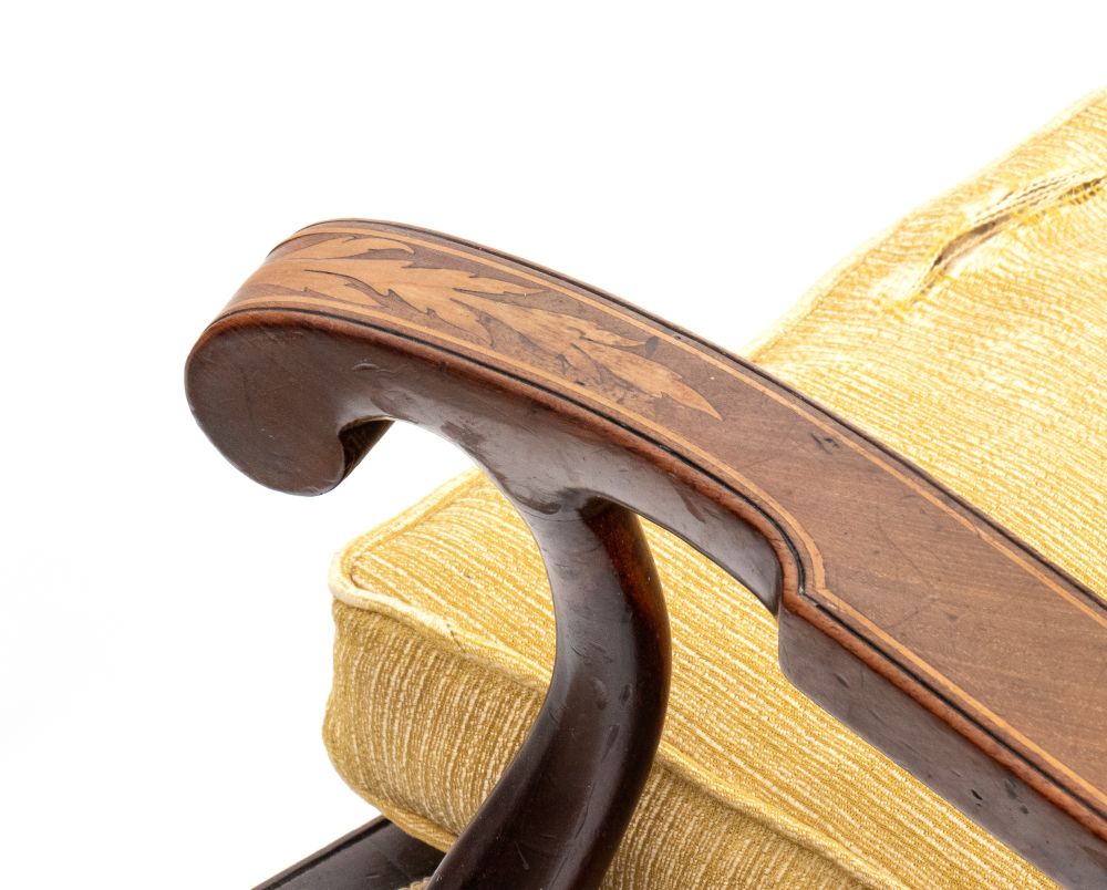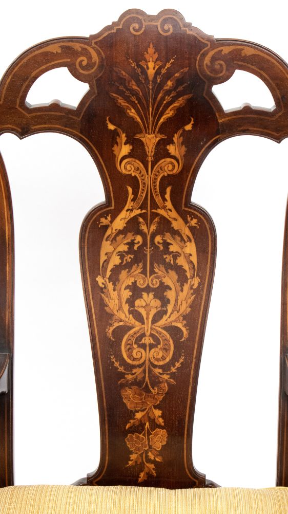 in mogano e intarsiato a motivi floreali e vegetali in legno di bosso.