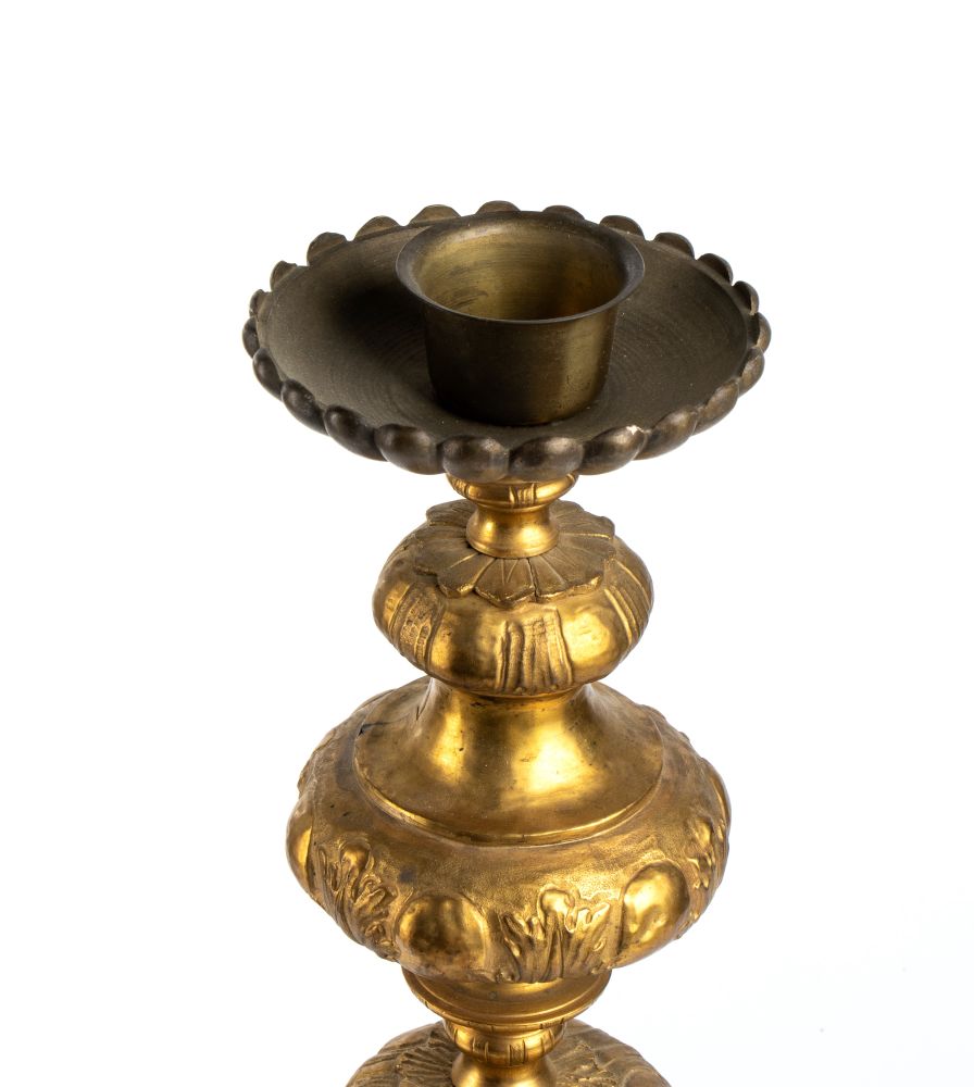Lotto 302 | Candelabro in ottone con base legno dorato - Italia, XIX secolo