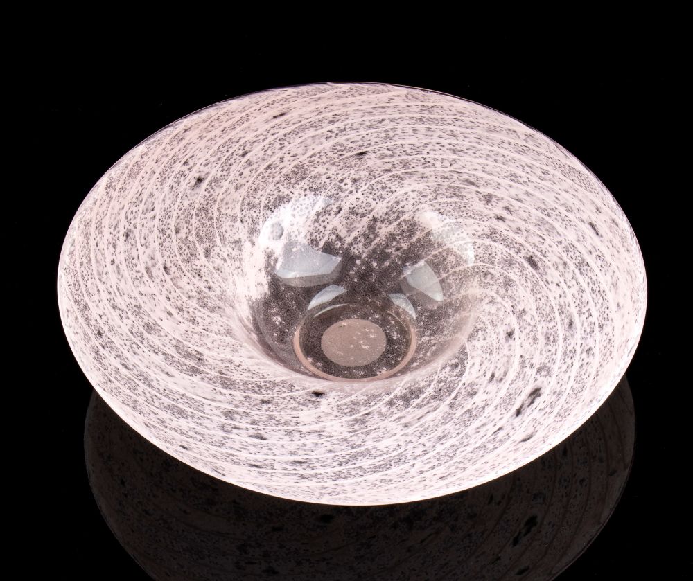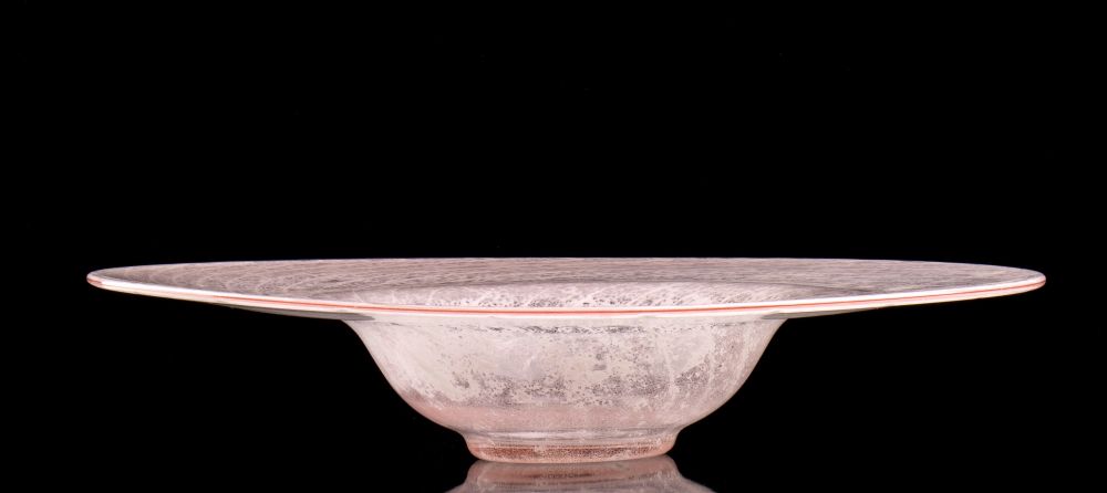 in vetro rosa con motivo spiraliforme. Non firmato.