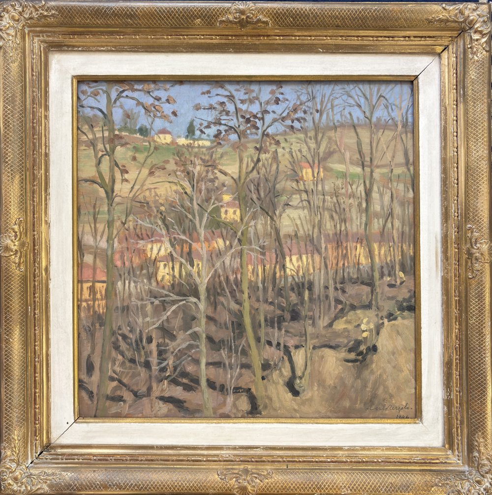 CARLO TERZOLO INCISA SCAPACCINO 1904 - TORINO 1975 Case a Pocapaglia Olio su tavola cm 40x40 firmato in basso a dx datato 1944