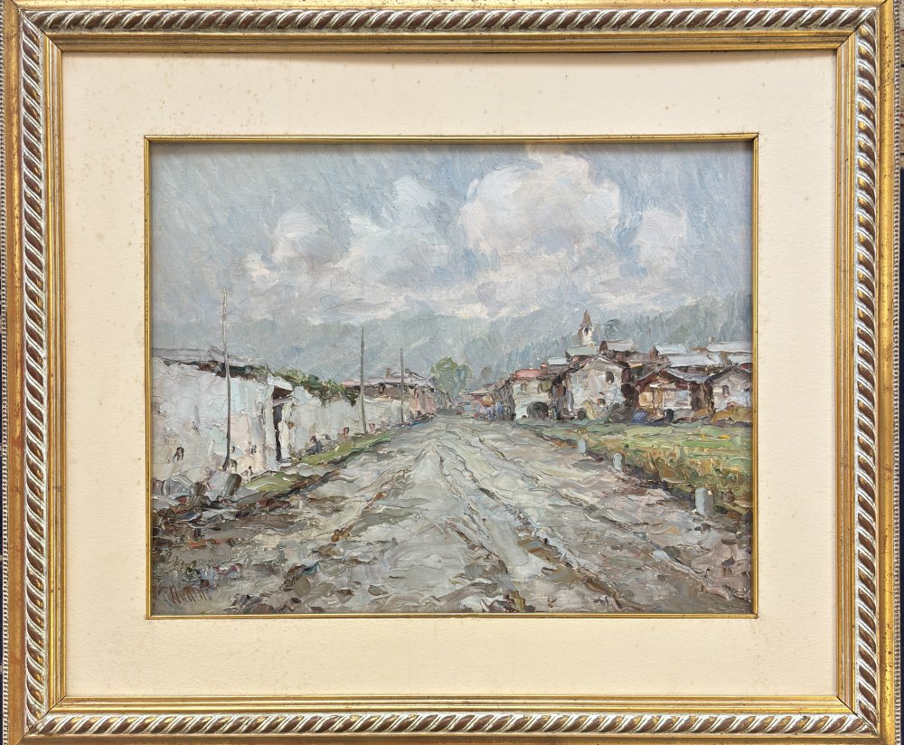 VITTORIO NATTINO SESTRI PONENTE (GE) 1890 - VOLTRI (GE) 1971 Vecchia Voltri Olio su cartone cm 37x46 firmato in basso a sx