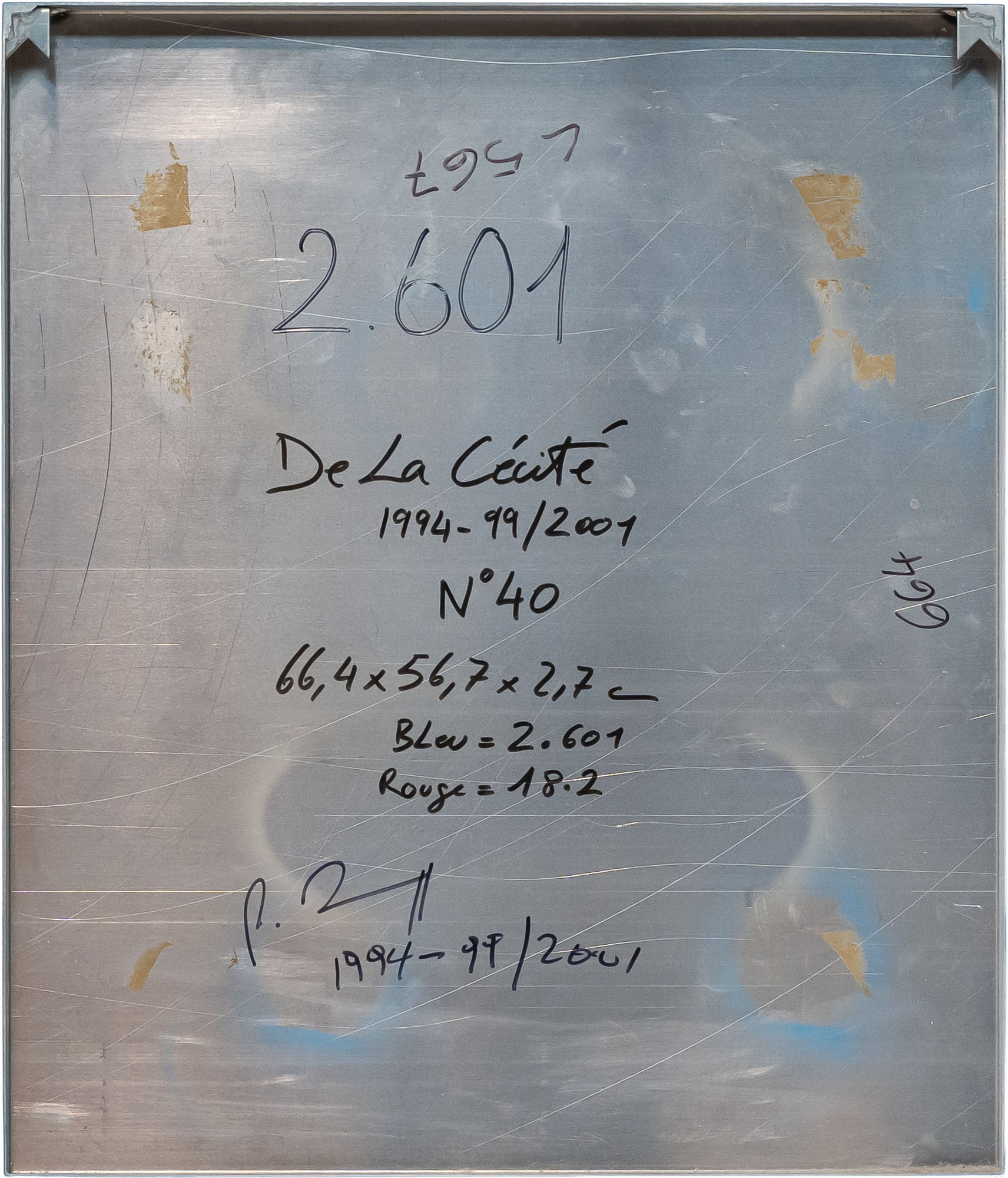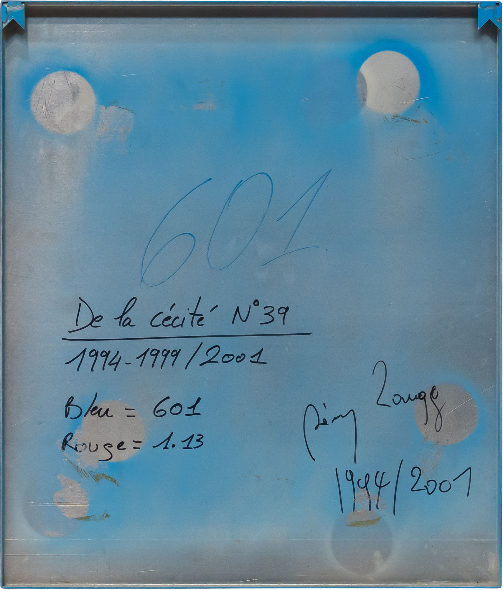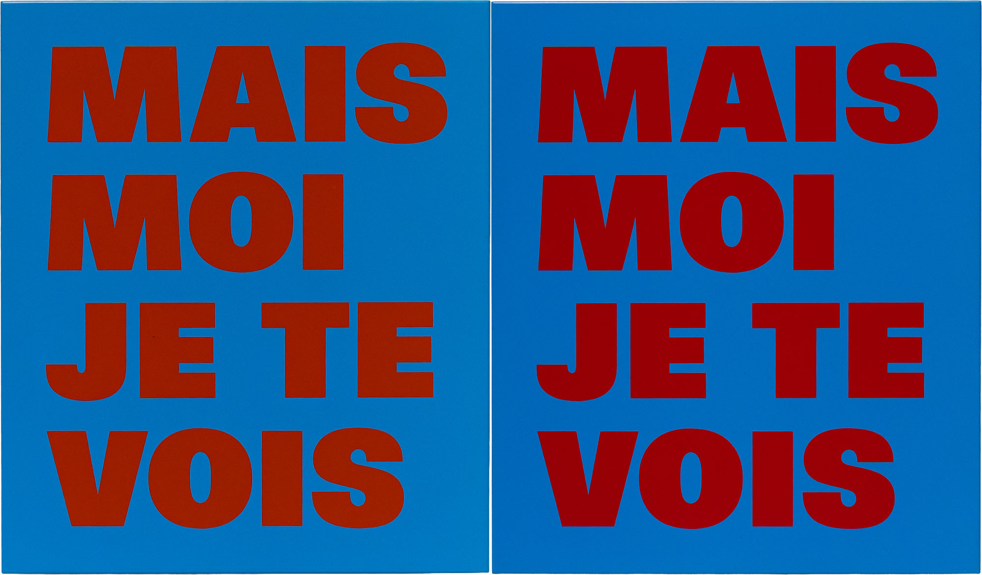RÉMY ZAUGG(1943 - 2005)De la cécité, mais/moi/je te/vois1994 - 1999 / 2001 / 2004Alluminio, vernice a pistola, serigrafia e vernice trasparente, ditticoDimensioni di ciascuna opera: 66,4 x 56,7 x 2,7 cmFirma, data e titolo al retro di ciascuna operaOpera accompagnata da certificato di autenticità a cura della Galleria Suzy Shammah, MilanoPROVENIENZA:Galleria Suzy Shammah, MilanoCollezione privataBIBLIOGRAFIA:Flash Art, dicembre - gennaio 2005, p. 113 (ill.)