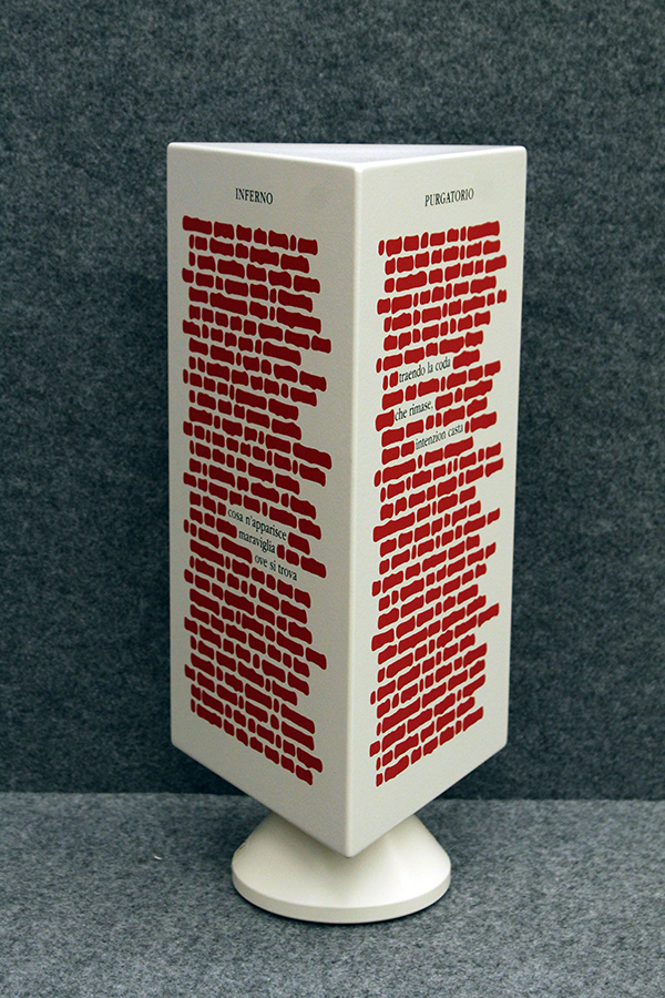 EMILIO ISGRO', "La Divina commedia", 2023, serigrafia su legno, esemplare IV/VI, 40x20 kg 2. Alla base: firmata a mano e timbrata dall'artista. Opera con certificato della galleria Daliano Ribani Arte.