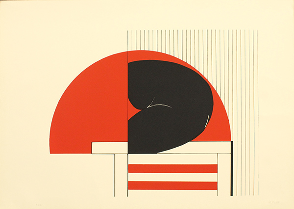 A. PULITI , anni 90' circa, litografia su cartoncino, cm 50x70. Al fronte: firma in basso a destra, tiratura e timbro in basso a sinistra. Esemplare PDA. Certificato di provenienza della Daliano Ribani Arte. Opera senza cornice.