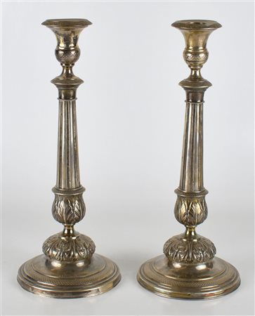 Coppia di candelieri in argento stile Luigi XVI sec.XIX (Roma)