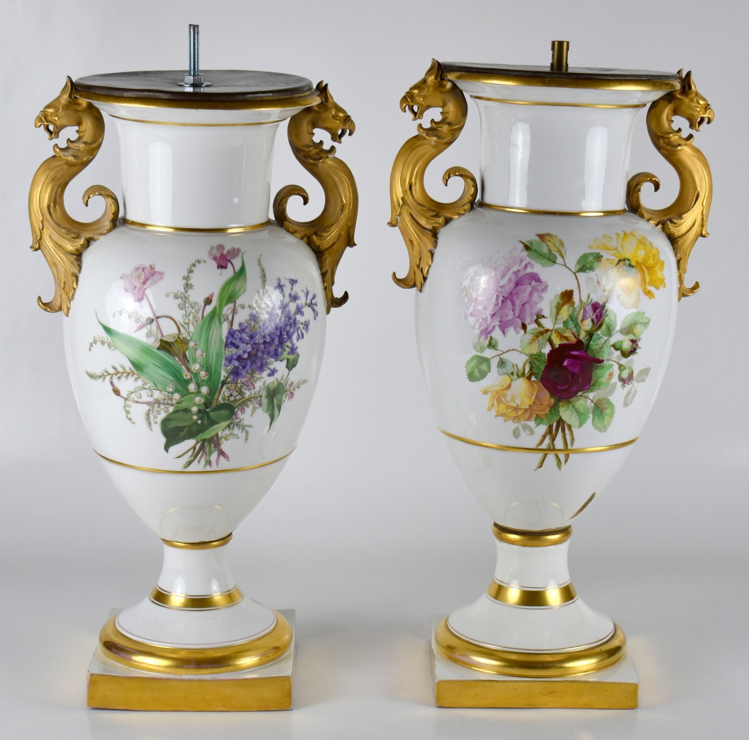 coppia di vasi in porcellana dipinta e dorata (difetti)