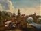 olio su tela 'paesaggio con figure e ponte' sec. XVIII