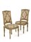 stile Luigi XVI, in legno laccato e dorato, spalliera sagomata, gambe troncopiramidali scannellate, ricoperte in seta rosa con decori floreali a losanga (2)