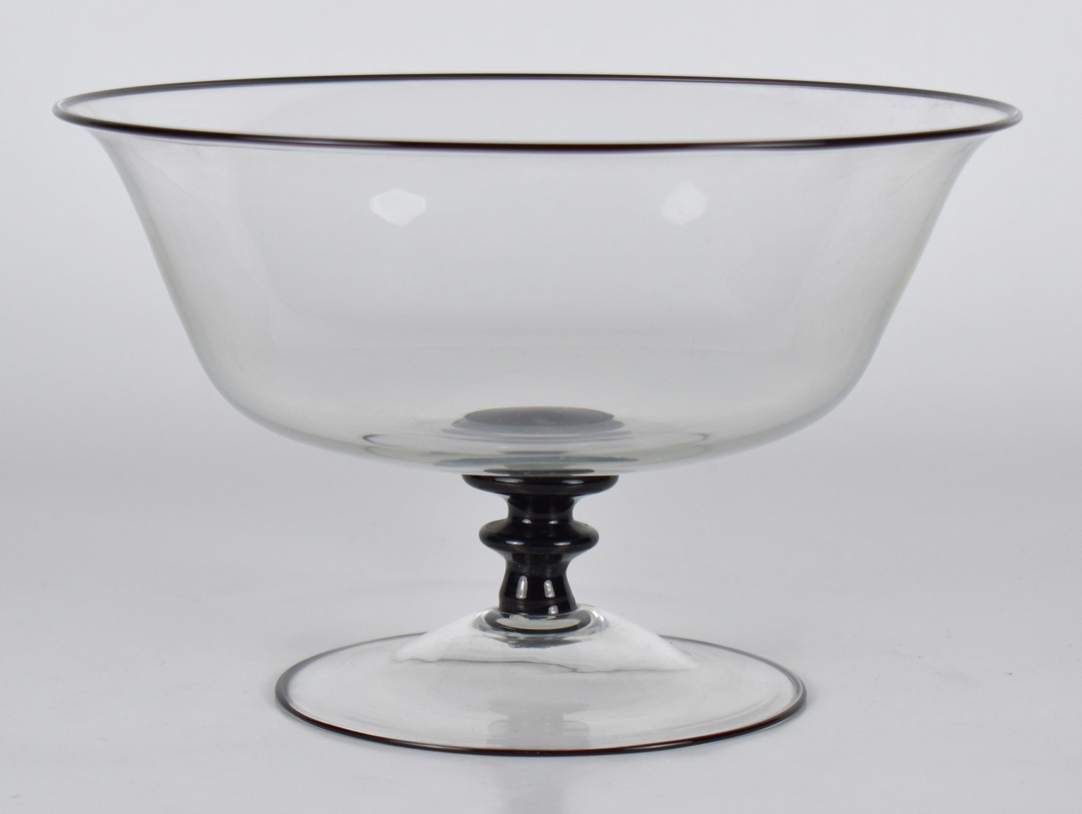 coppa in vetro soffiato di Murano trasparente e profili neri