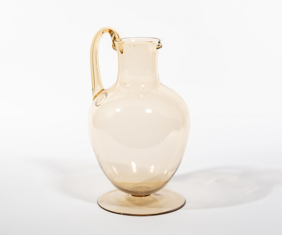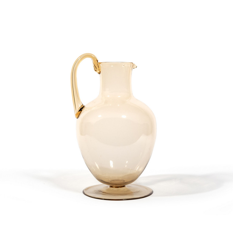 Una brocca in vetro trasparente fumè.