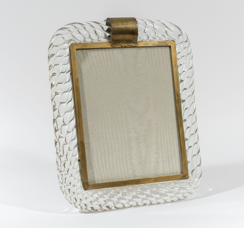 Una cornice portafoto in cristallo ritorto e ottone.
