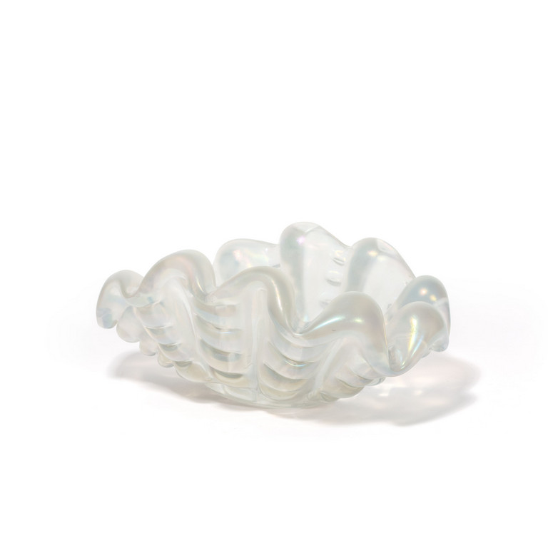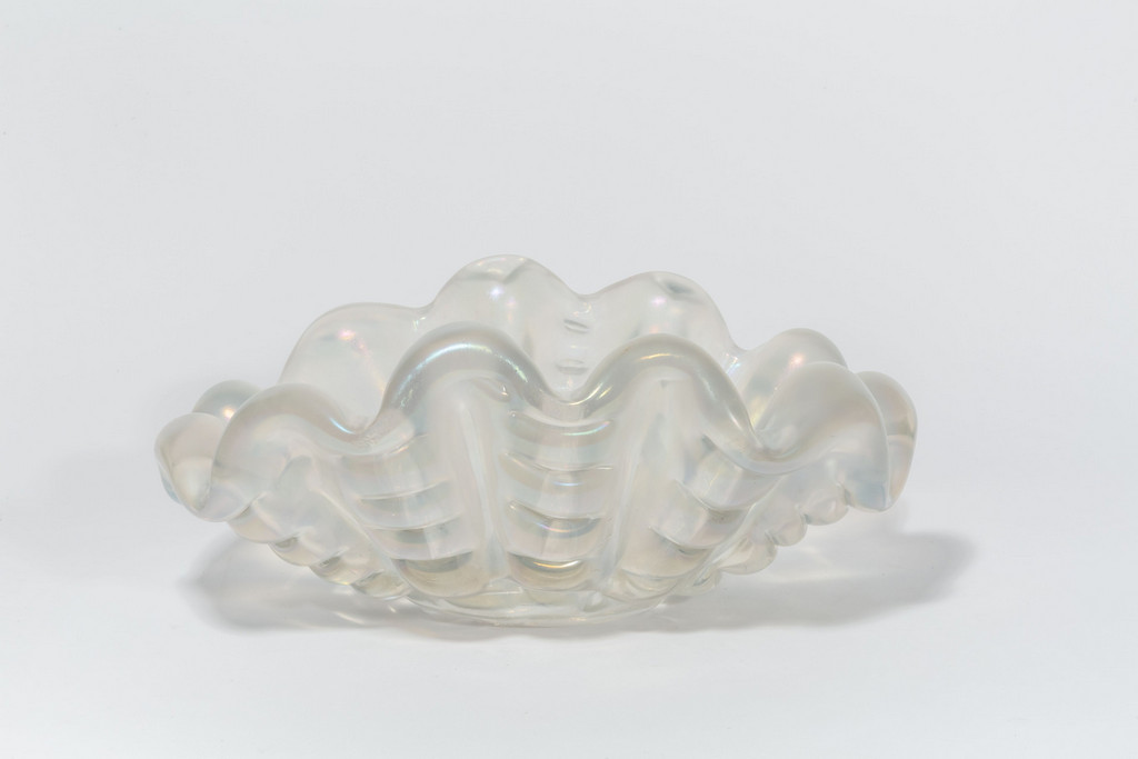 Una coppa a conchiglia in cristallo fortemente iridato.