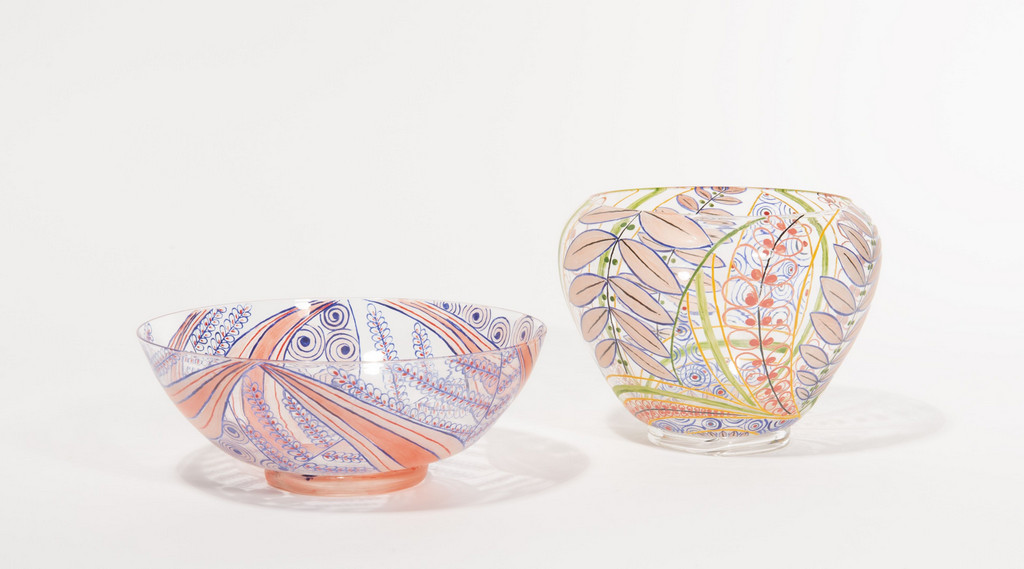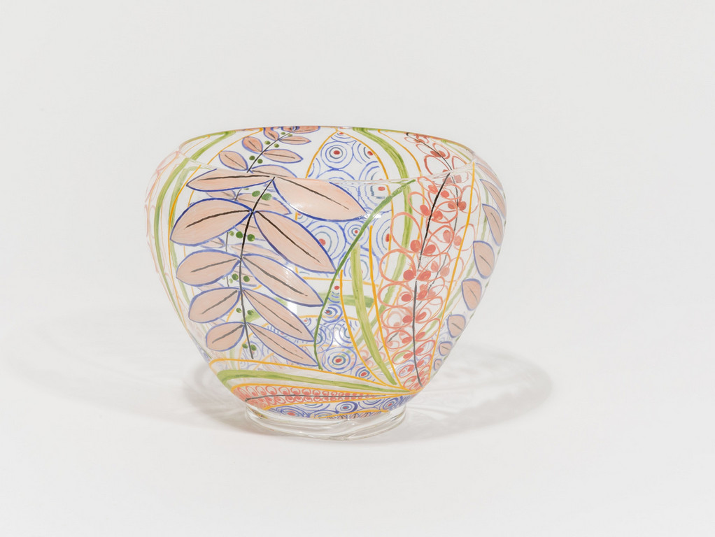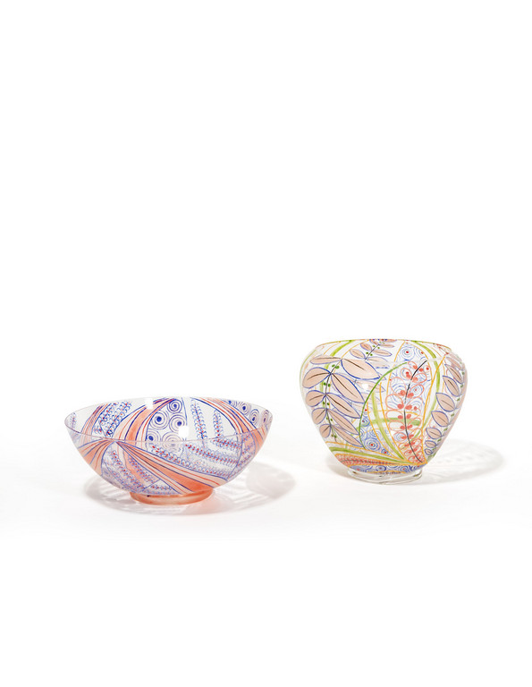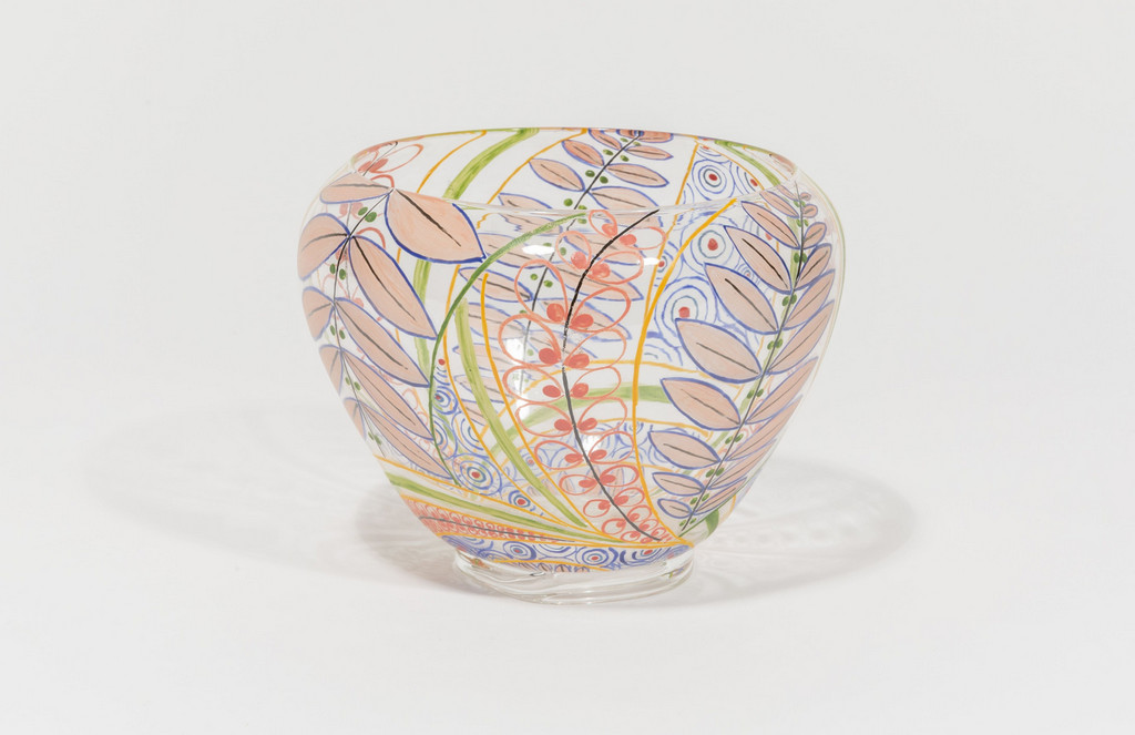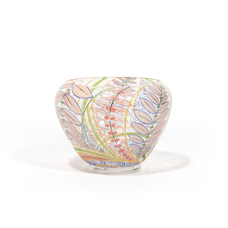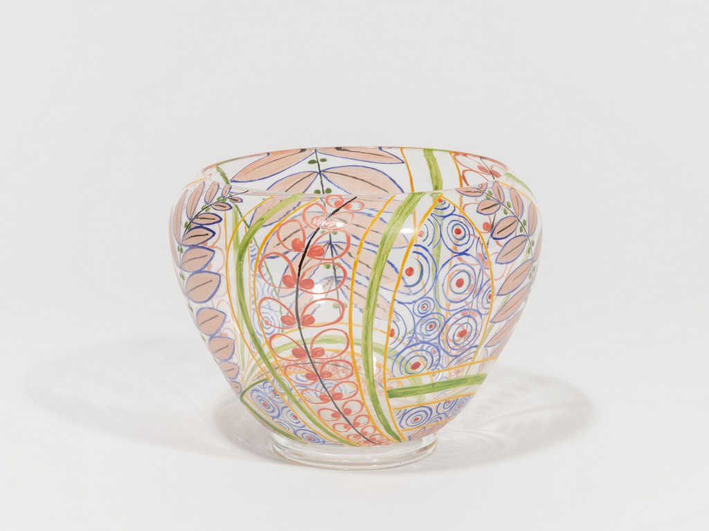 Una rara coppa a smalti policromi con decori a motivi vegetali.