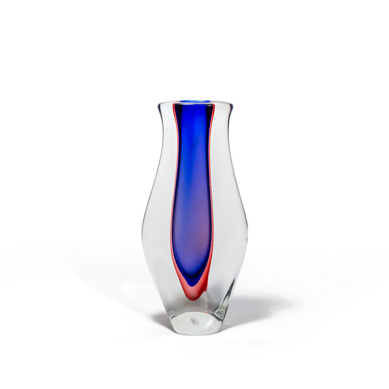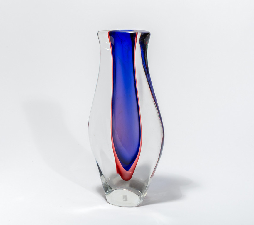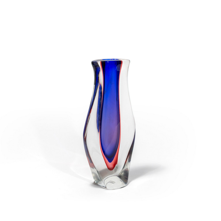 Vaso in vetro sommerso blu e rubino.