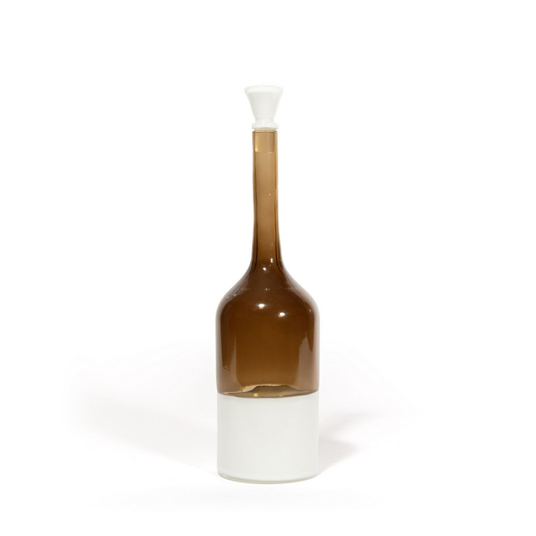 Una bottiglia a incalmo lattimo e grigio trasparente.