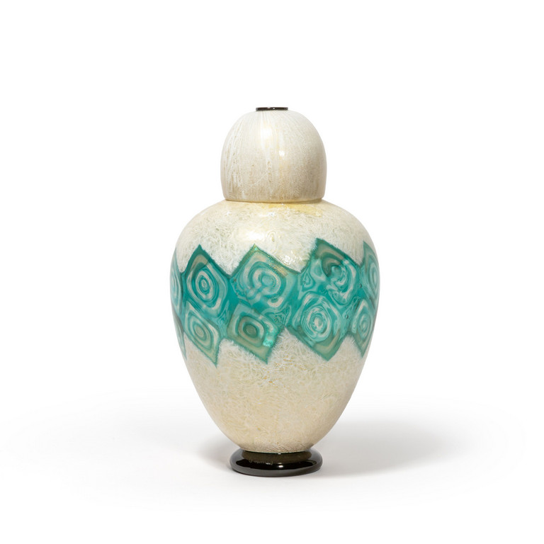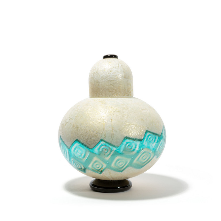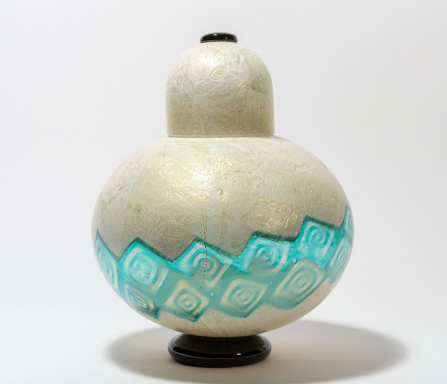Due vasi in vetro lattimo e foglia oro e fasce