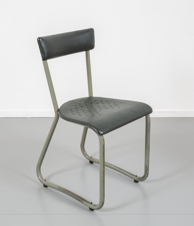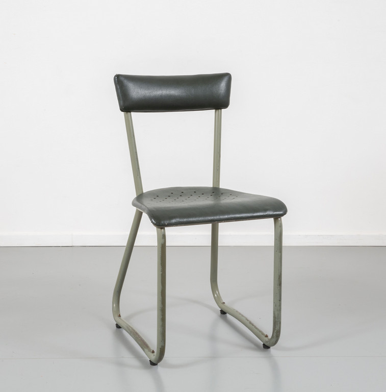 Painted steel tubular padded seat and backrest covered in vinyl leather.