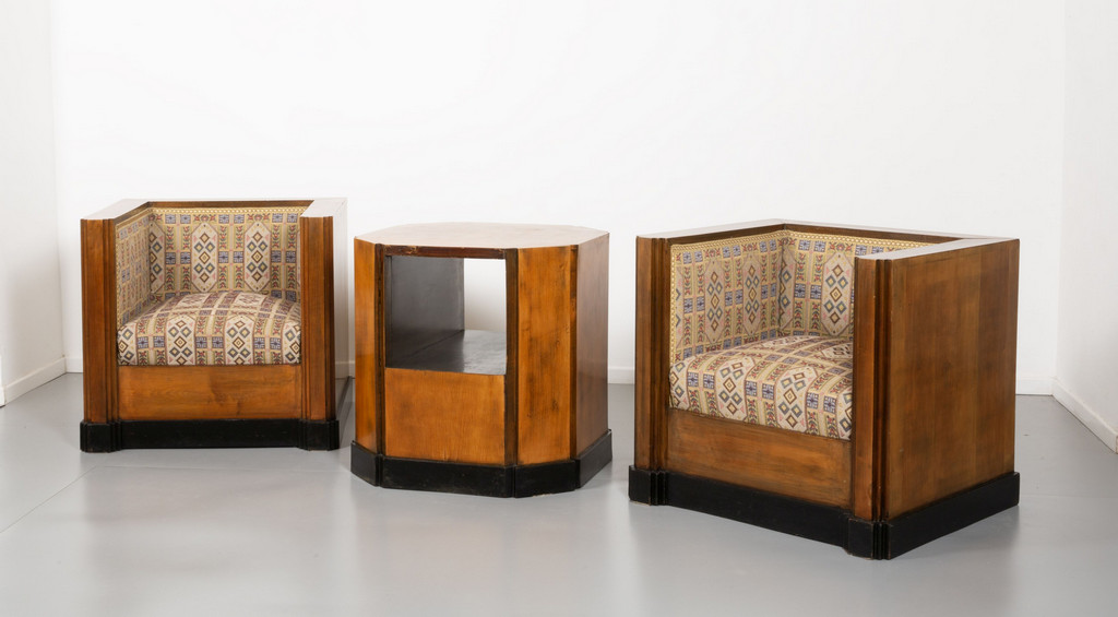 DUE POLTRONE E UN PICCOLO MOBILE anni '40.