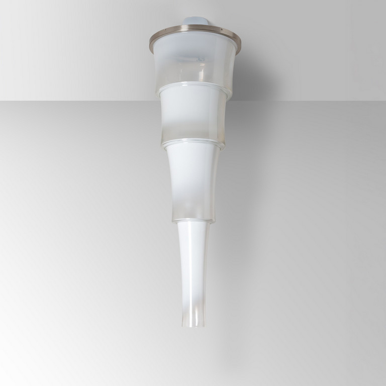 Elementi concentrici in vetro opalino sfumato trasparente.