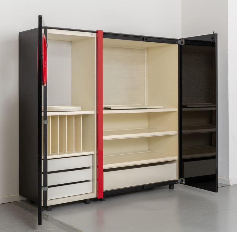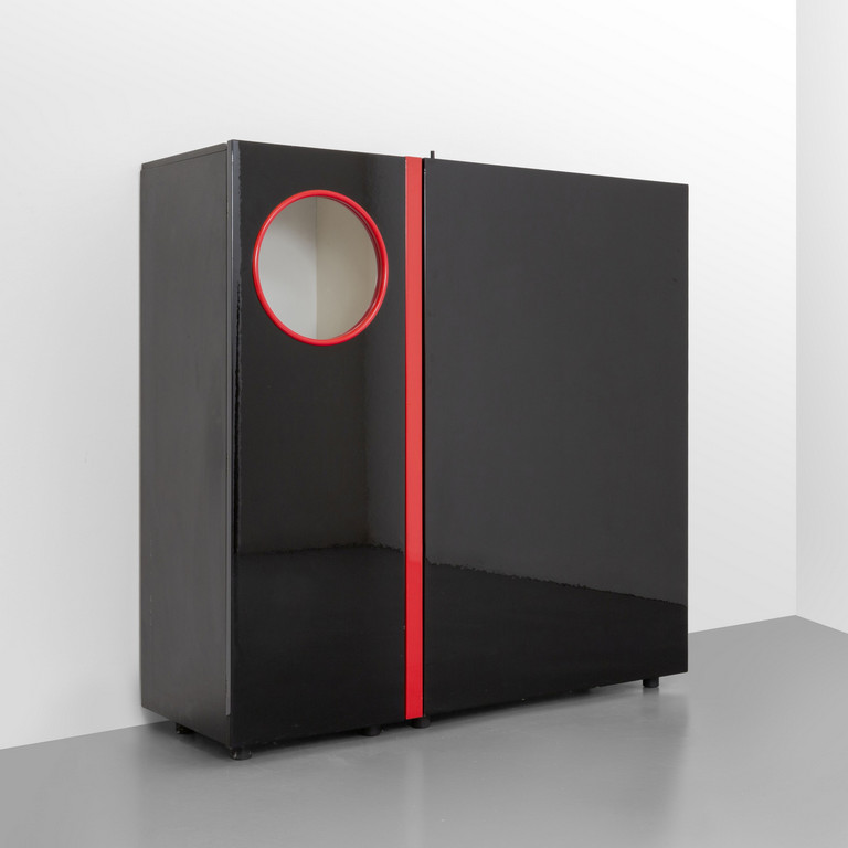 Un mobile contenitore 'Playbox' con illuminazione integrata per sistema video e stereo.