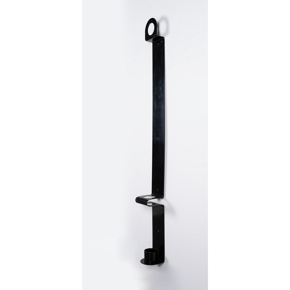Appendiabiti con portaombrelli in metallo ricurvo verniciato nero. Segni di uso.