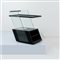 Carrello da servizio con struttura mista in legno verniciato nero e cristallo incolore trasparente, piano superiore rettangolare, piano inferiore con due vani a giorno, minuterie in metallo.