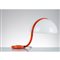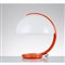 Lampada da tavolo ad una luce modello “Serpente”, struttura in metallo laccato rosso, diffusore semisferico in perspex lattato.