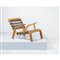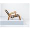 Poltrona con struttura in legno di ciliegio, cinghie di sostegno in tessuto e molle. Cuscino mancante. Segni di uso.
