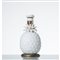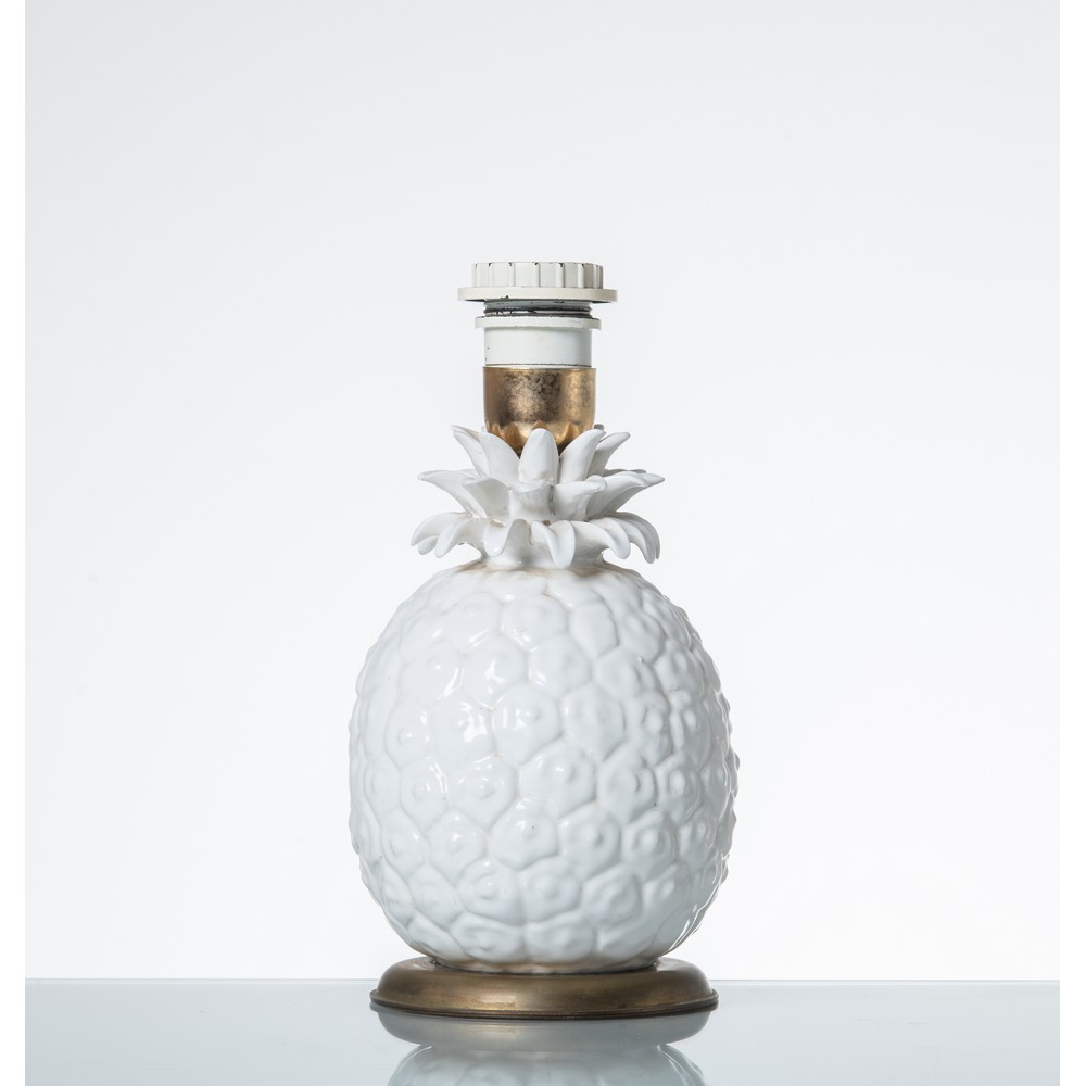 Lampada da tavolo ad una luce in ceramica smaltata bianca, corpo ad ananas, base circolare in metallo dorato.