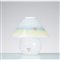Lampada da tavolo a due luci, struttura in metallo verniciato bianco con diffusore semi conico in vetro parzialmente opalino e decorato con rigature orizzontali gialle e celesti. Etichetta di produzione.