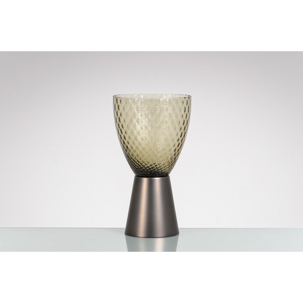 Produzione esclusiva per “Bottega Veneta” composto da due parti, una a coppa in vetro “Balloton” talpa e una in metallo con finitura brunita spazzolata. Etichetta di produzione, firma a graffio e data.