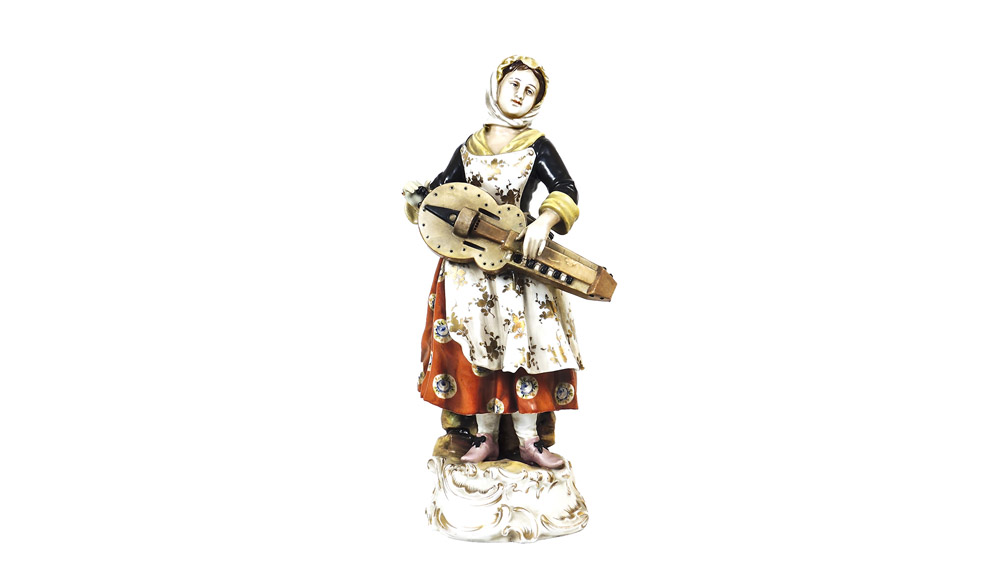 FIGURA IN PORCELLANA prima metà del XX secolo raffigurante una musicista in abiti d'epoca, lievi mancanze h cm 32 PORCELAIN FIGURE, FIRST HALF OF 20TH CENTURY