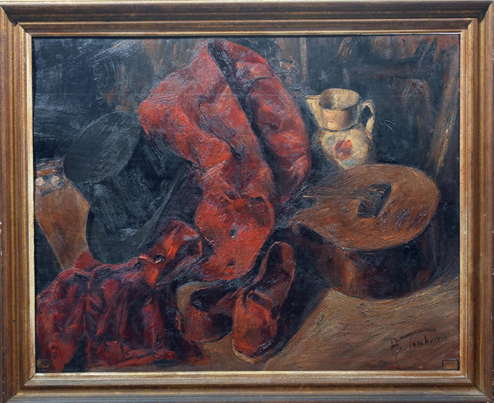 Tamburrini Amerigo ( Napoli 1901 - 1966) Natura morta olio su tavola, cm 62,5x80 firmato in basso a destra: A. Tamburrini