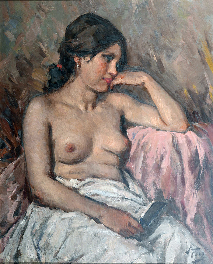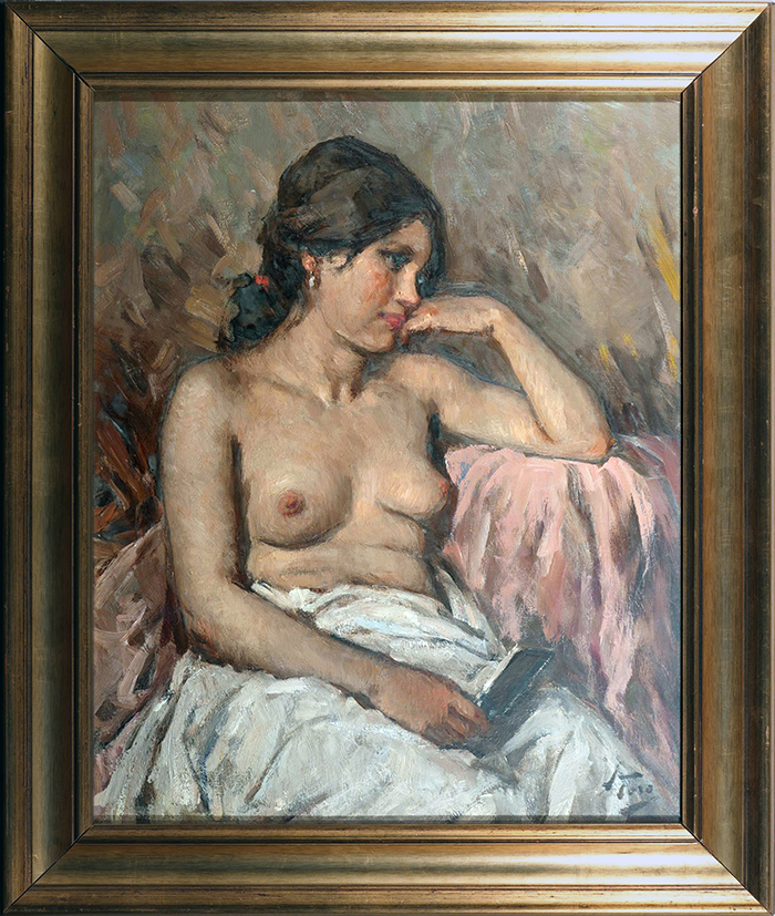 Toro Attilio (Napoli 1892 - Portici, NA 1982) La modella olio su tavola, cm 50x40 firmato in basso a destra: A Toro