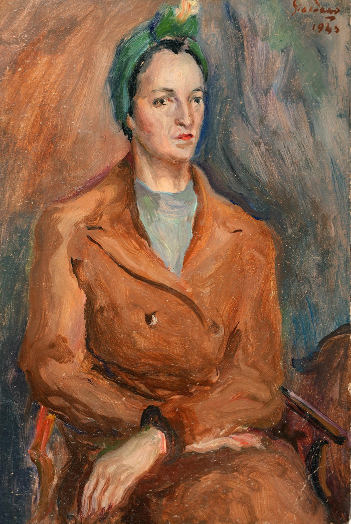 Giordano Edoardo (Napoli 1904 - Roma 1974) Figura femminile olio su cartone, cm 47,5x31,5 firmato e datato in alto a destra: Giordano 1945
