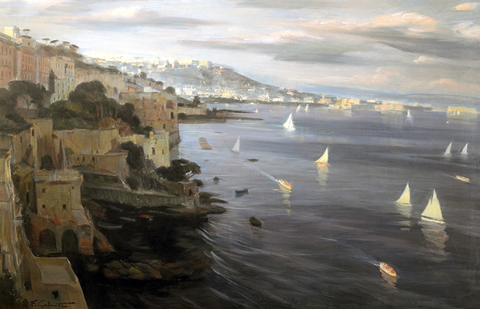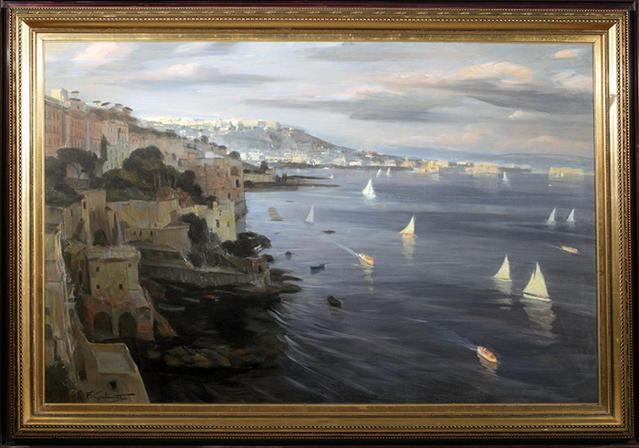 Galante Francesco (Margherita di Savoia, FG 1884 - Napoli 1972) Napoli da Posillipo olio su tela, cm 80x120 firmato in basso a sinistra: F. Galante