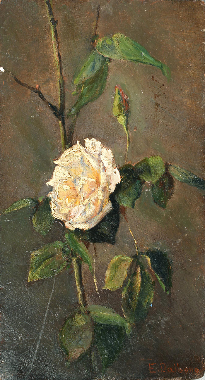Dalbono Edoardo ( Napoli 1841 - 1915 ) Rosa bianca olio su tavola, cm 22,5x12 firmato in basso a destra: E. Dalbono