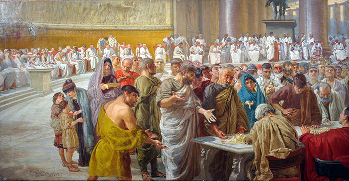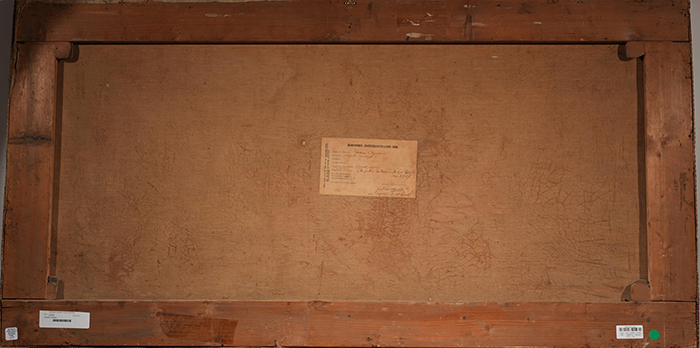 D'Agostino Gaetano (Salerno 1873 - Napoli 1914 ) Pro Patria ad Erarium olio su tela cm 70x137 firmato in basso a sinistra: G.D'Agostino a tergo cartiglio Munchener Jahresausstellung 1906 Esposizioni: Londra,Mostra Italiana,1904 Napoli,Promotrice S. Rosa, 1906