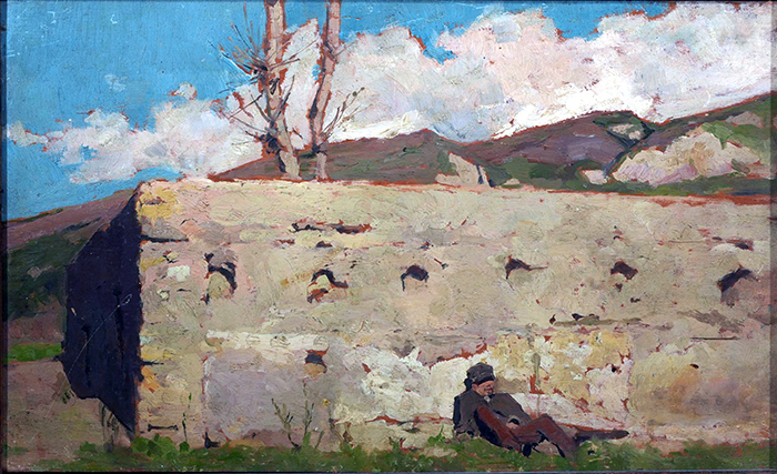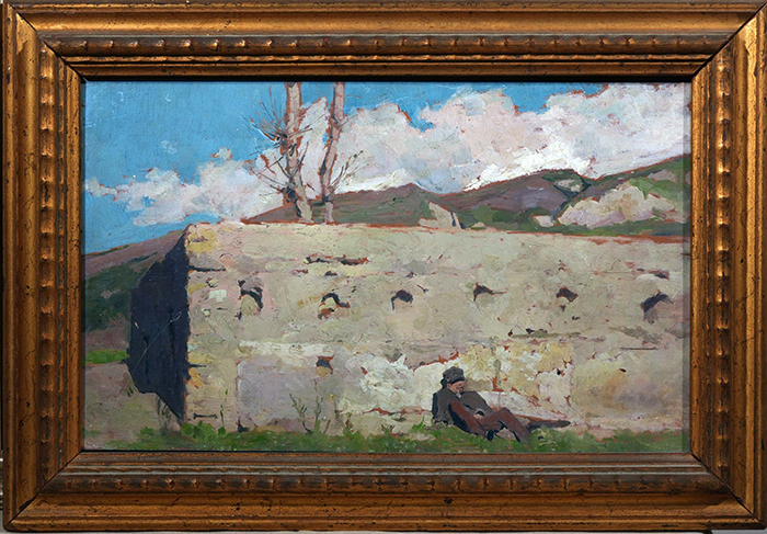 Marinelli Vincenzo (S. Martino D'Agri, PZ 1819 - Napoli 1892) Il riposo olio su tavola, cm 21x34