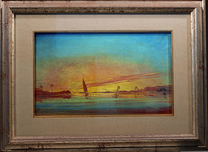 Marinelli Vincenzo (S. Martino D'Agri, PZ 1819 - Napoli 1892) Il tramonto sul nilo olio su tela, cm 20x33