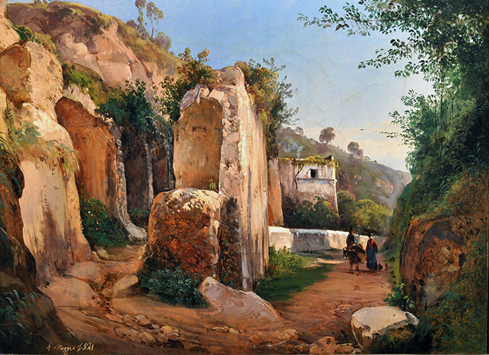 Gigante Giacinto (Napoli 1806 - 1876) Via Campana Pozzuoli olio su carta rip. su tela, cm 36x50 firmato e datato in basso a sinistra: Gia Gigante 4 maggio 1841 Bibliografia: Rosario Caputo, La Pittura Napoletana del Primo Ottocento, Franco Di Mauro Editore, Sorrento (NA), 2021, p.268